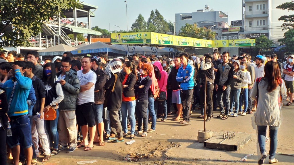 | Ngày 1/2, hãng xe khách Phương Trang bán vé xe tết cho tuyến Sài Gòn - Quy Nhơn (Bình Định). Do đây là hãng xe khách có tiếng, phục vụ chất lượng cao và chạy xe an toàn nên hàng trăm người dân đã chờ đợi từ khuya đến sáng để chờ thời điểm phát số thứ tự. |