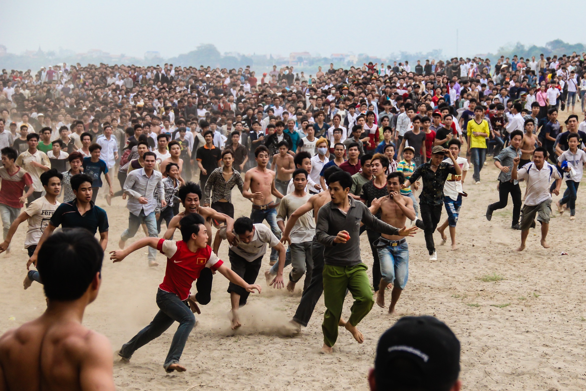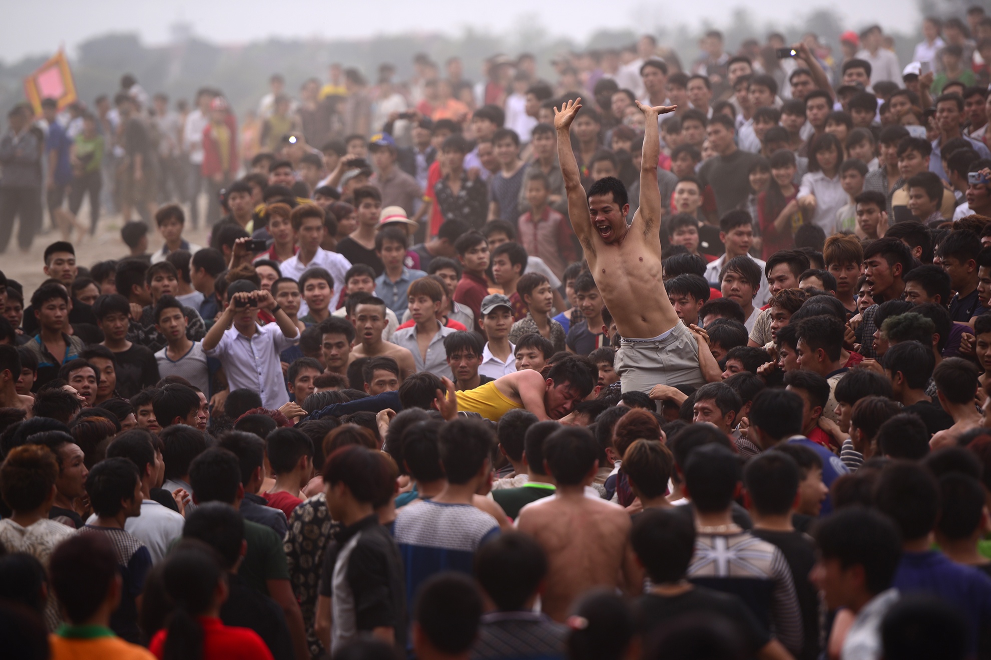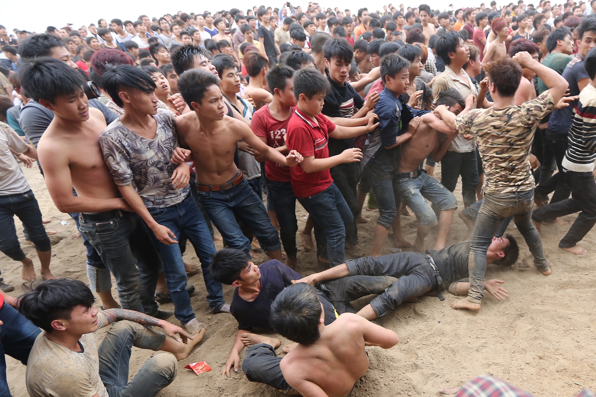 | Chỉ cần một người bắt được phết trong tay, ngay lập tức hàng chục cánh tay xung quanh ghì đầu, tát vào mặt để đoạt lại. |