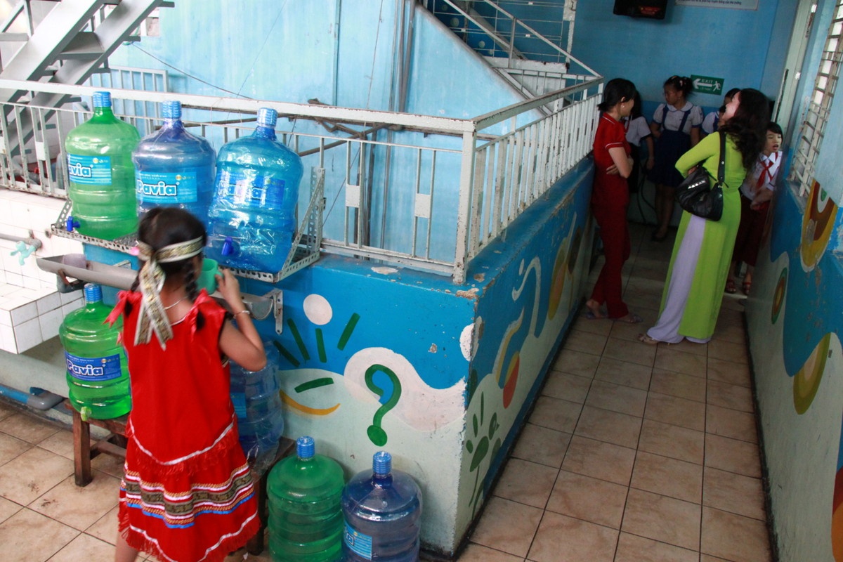 | Hành lang trường nhỏ hẹp, nên học sinh tập trung học sinh, tổ chức xếp hàng, uống nước, đi vệ sinh... đều diễn ra ở hành lang. Vì thế nên nỗi lần học sinh lên lớp hay ra về, giáo viên phải đảm nhiệm thêm công việc chỉ dẫn để đảm bảo an toàn và không bị kẹt. |