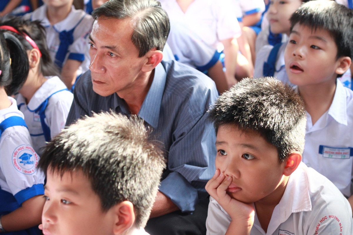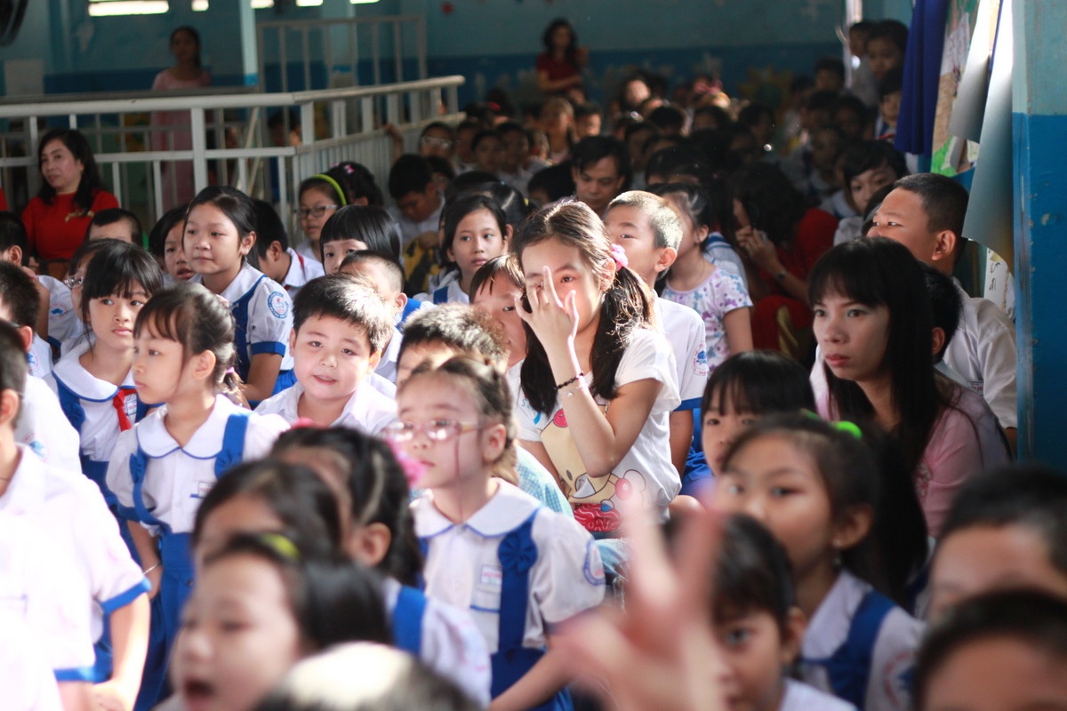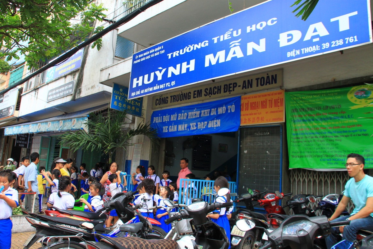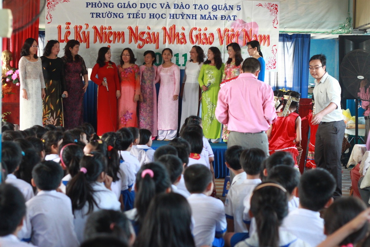 Tại tươờng tiểu học Huỳnh Mẫn Đạt (Q.5), các em học sinh cũng có mặt từ sáng tham gia lễ 20/11. Nằm ở trung tâm thành phố, nhưng trường là một trong những ngôi trường nghèo nhất của TP.HCM. Nơi đây cũng là môi trường học chủ yếu của con em các công nhân nghèo của thành phố.