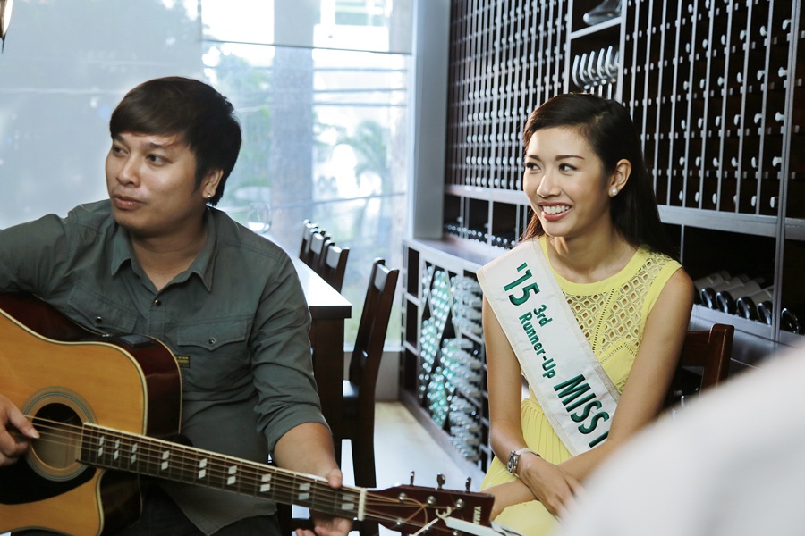 | Trước máy ghi hình, Thúy Vân giao lưu tự tin. Cô trả lời các câu hỏi của MC một cách thông minh, hài hước. Qua đây, người đẹp cũng chia sẻ những kỷ niệm tại cuộc thi Hoa hậu Quốc tế. Cô còn bày tỏ mong ước trở thành MC song ngữ chuyên nghiệp trong tương lai. |
