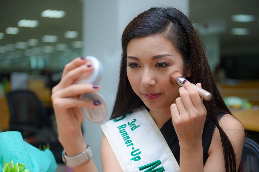 | Thời gian nghỉ giải lao, Á khôi Áo dài tranh thủ tút tát nhan sắc. Thúy Vân sở hữu vẻ đẹp mộc mạc, tự nhiên. Cô từng tâm sự, bản thân ít khi trang điểm. Khi có việc cần, Thúy Vân mới nhờ đến sự hỗ trợ của chuyên gia trang điểm. Trong cuộc thi ở Nhật Bản, cô phải tự chuẩn bị các khâu, nhờ đó, kỹ năng trang điểm "lên tay" hẳn. |