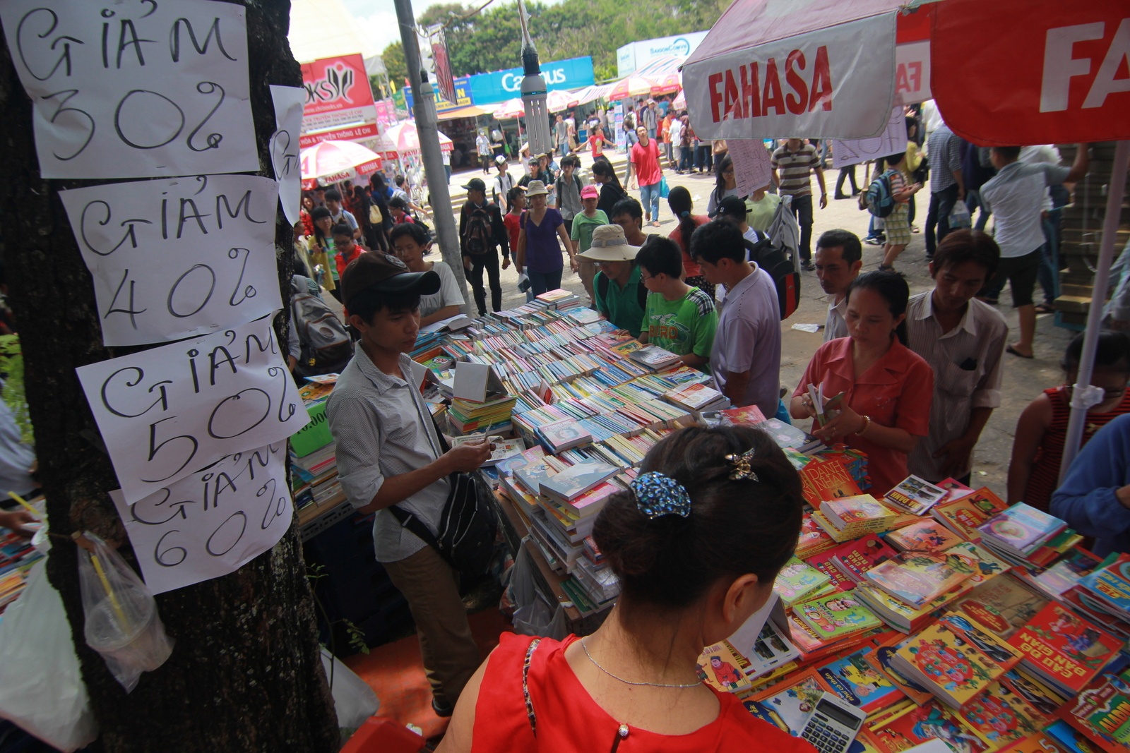 | Mức giảm giá nhiều nhất ở hội sách là 50%. |