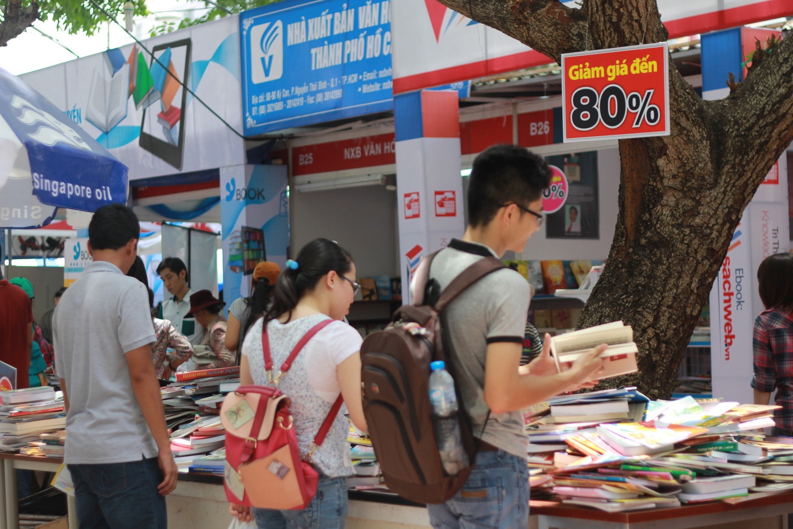 | Có nhiều gian hàng giảm giá mua sách đến 80%. |