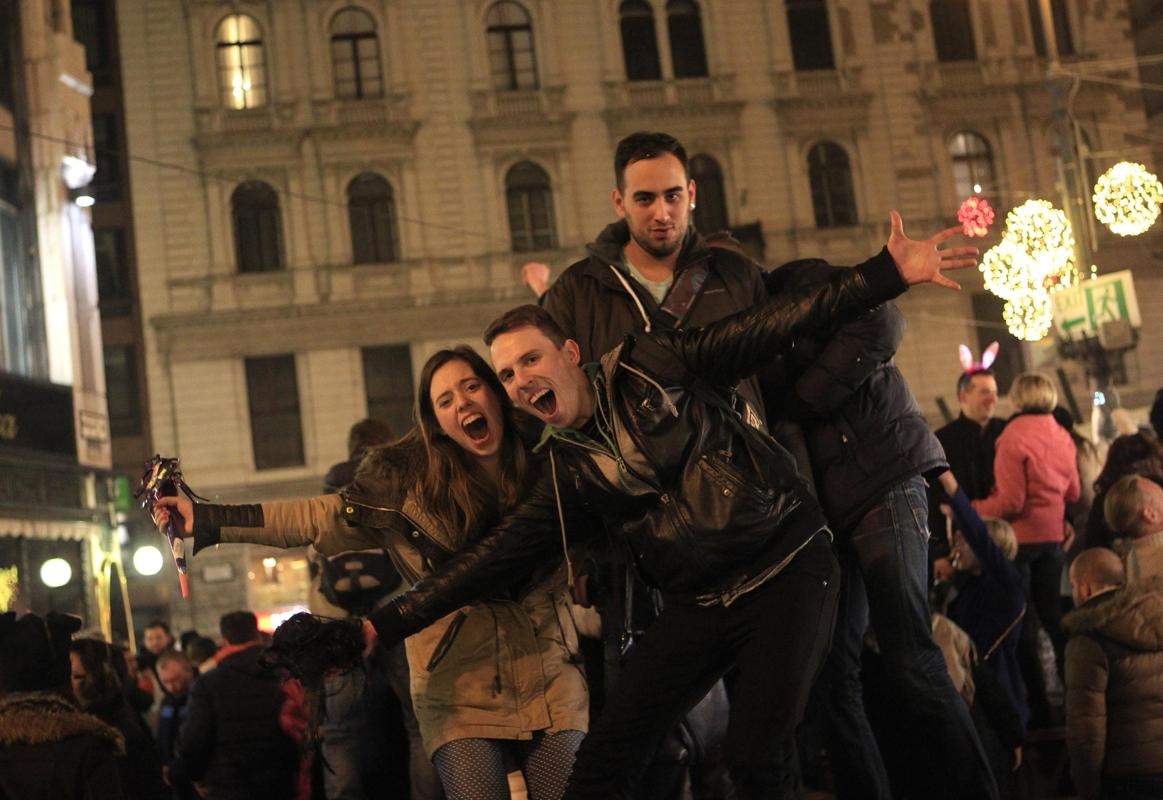Thanh niên đổ ra đường phố sau khoảnh khắc giao thừa tại thành phố Budapest, Hungary. Ảnh: Reuters