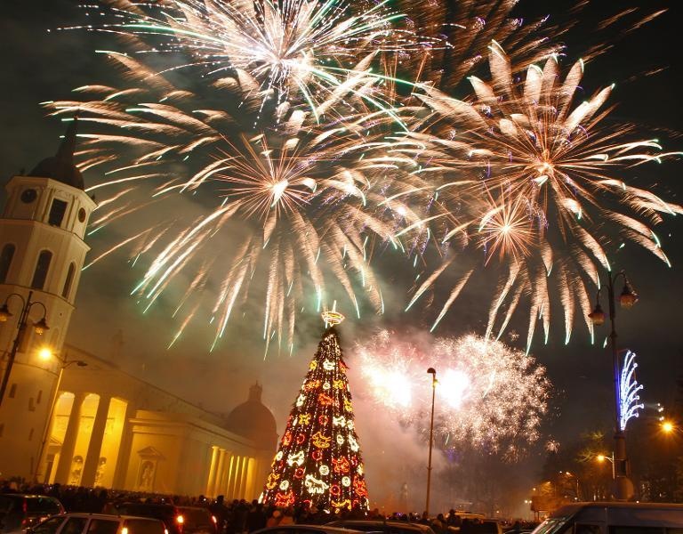 | Hàng nghìn người ngắm pháo hoa phía trên quảng trường Nhà Thờ tại thành phố Vilnius, thủ đô của Latvia. Ảnh: AFP |