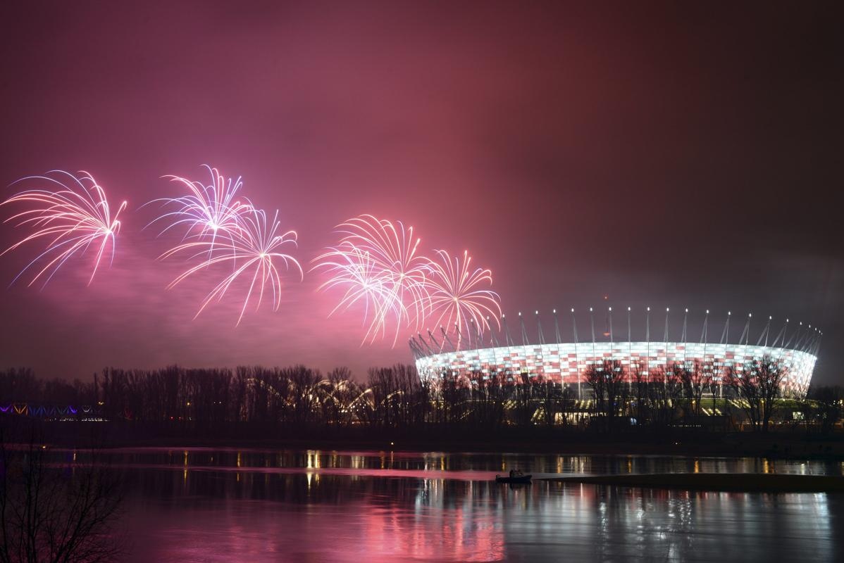 Pháo hoa bay phía trên sân vận động quốc gia tại thủ đô Warsaw của Ba Lan để chào đón năm mới vào ngày 1/1. Ảnh: Reuters