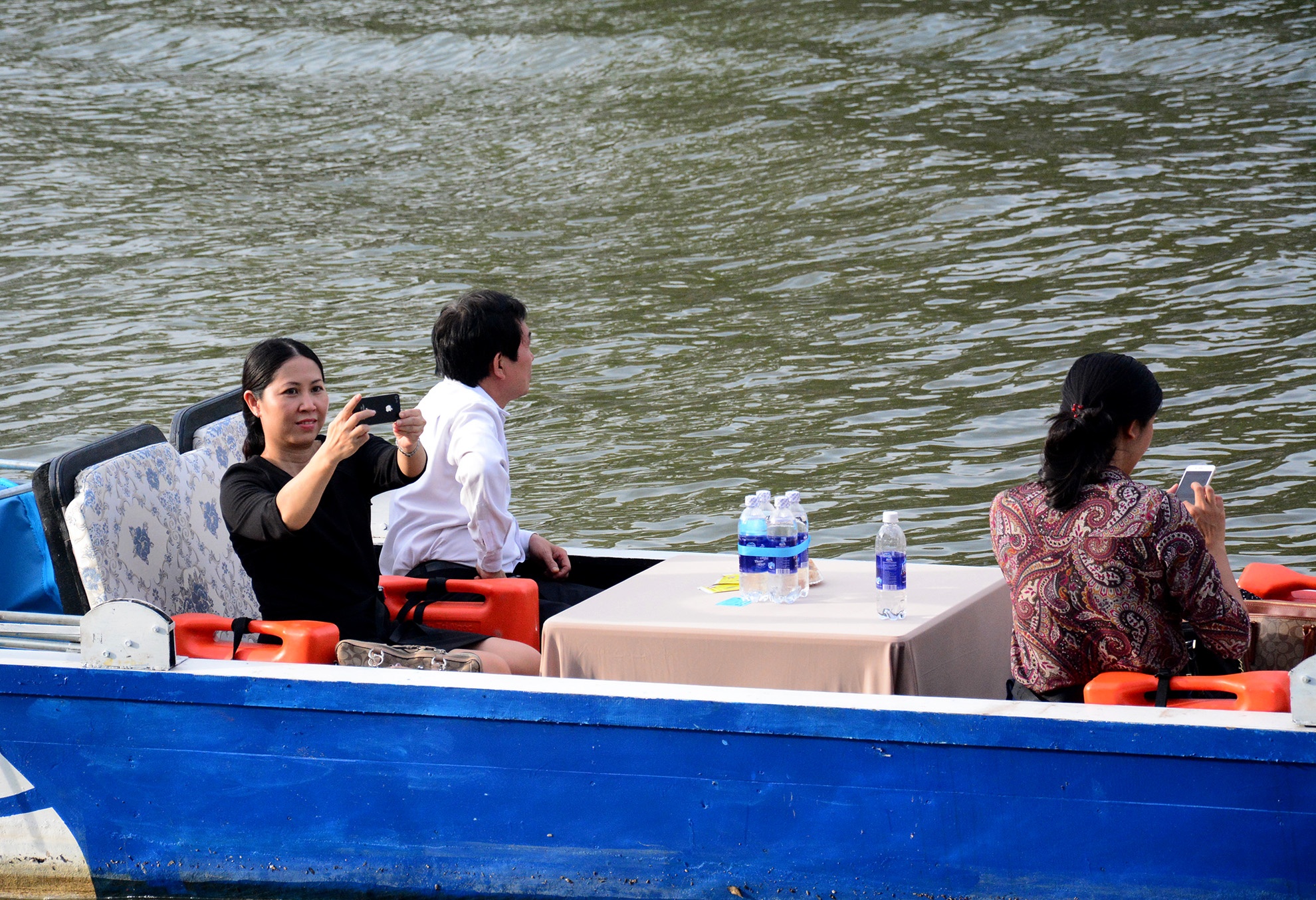 Trong buổi đầu hoạt động, nhiều du khách thích thú chụp hình, lưu lại những cảnh đẹp hai bên kênh.
