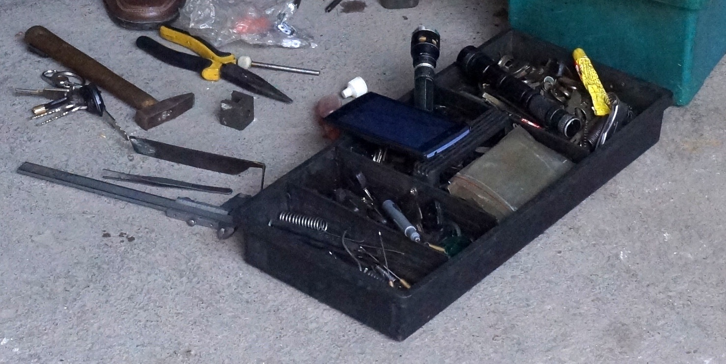 | Đồ nghề của một locksmith (thợ sửa khóa) khá đơn giản, vốn ít. Ảnh: Diệp Sa |