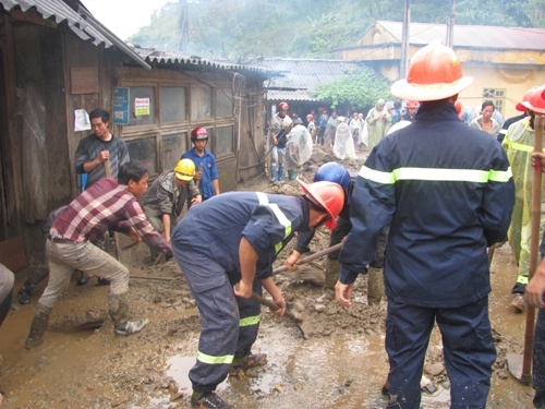 | Các lực lượng cùng tích cực tham gia ứng cứu - Ảnh: Tiền Phong. |