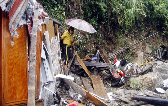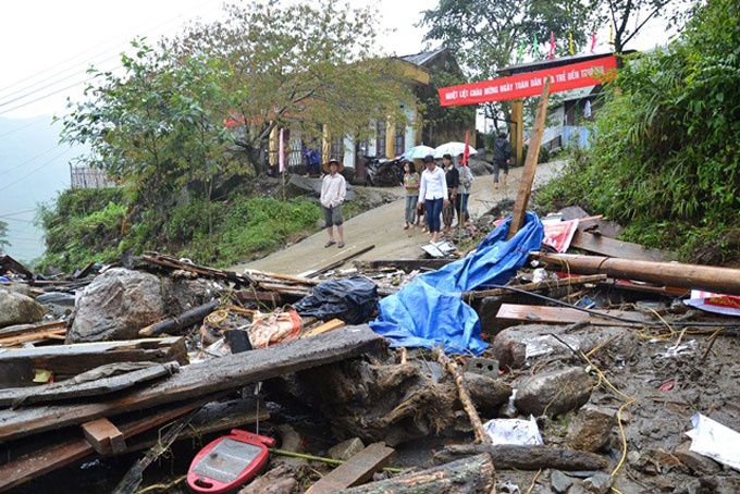 | Những em học sinh lớn lăn vào đào bới bùn đất, khiêng những tảng đá lớn để dọn dẹp nhà cửa còn sót lại, ai cũng thấy xót xa trước hậu quả lũ dữ để lại. Cô giáo Trần Thị Hằng, THCS Bản Khoang, lần tìm khắp các hốc đá và đống đổ nát với hy vọng tìm thấy tập hồ sơ học sinh vẫn còn mắc kẹt đâu đó - Ảnh: Báo Lào Cai. |