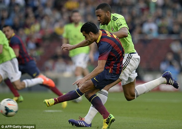 | Ở trận gặp Osasuna, Pedro ghi bàn ấn định chiến thắng 7-0 cho đội chủ sân Nou Camp. |