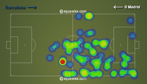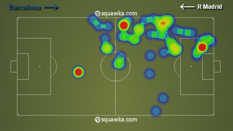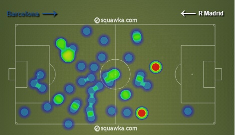 Bản đồ nhiệt cũng cho thấy Ronaldo có một lần lui về phòng ngự, nhưng đó cũng là lần mà anh đã để Daniel Alves “xỏ kim” trước khi thử thách Diego Lopez. Lối di chuyển không có điểm nhấn của Ronaldo đặt hệ thống chiến thuật của Madrid vào trạng thái luôn luôn lỏng lẻo: Mỗi khi tiền vệ người Bồ di chuyển khỏi một khoảng không gian nào đó không báo trước, các đồng đội buộc phải trám chỗ cho anh, và đội hình Madrid xộc xệch ngay lập tức.