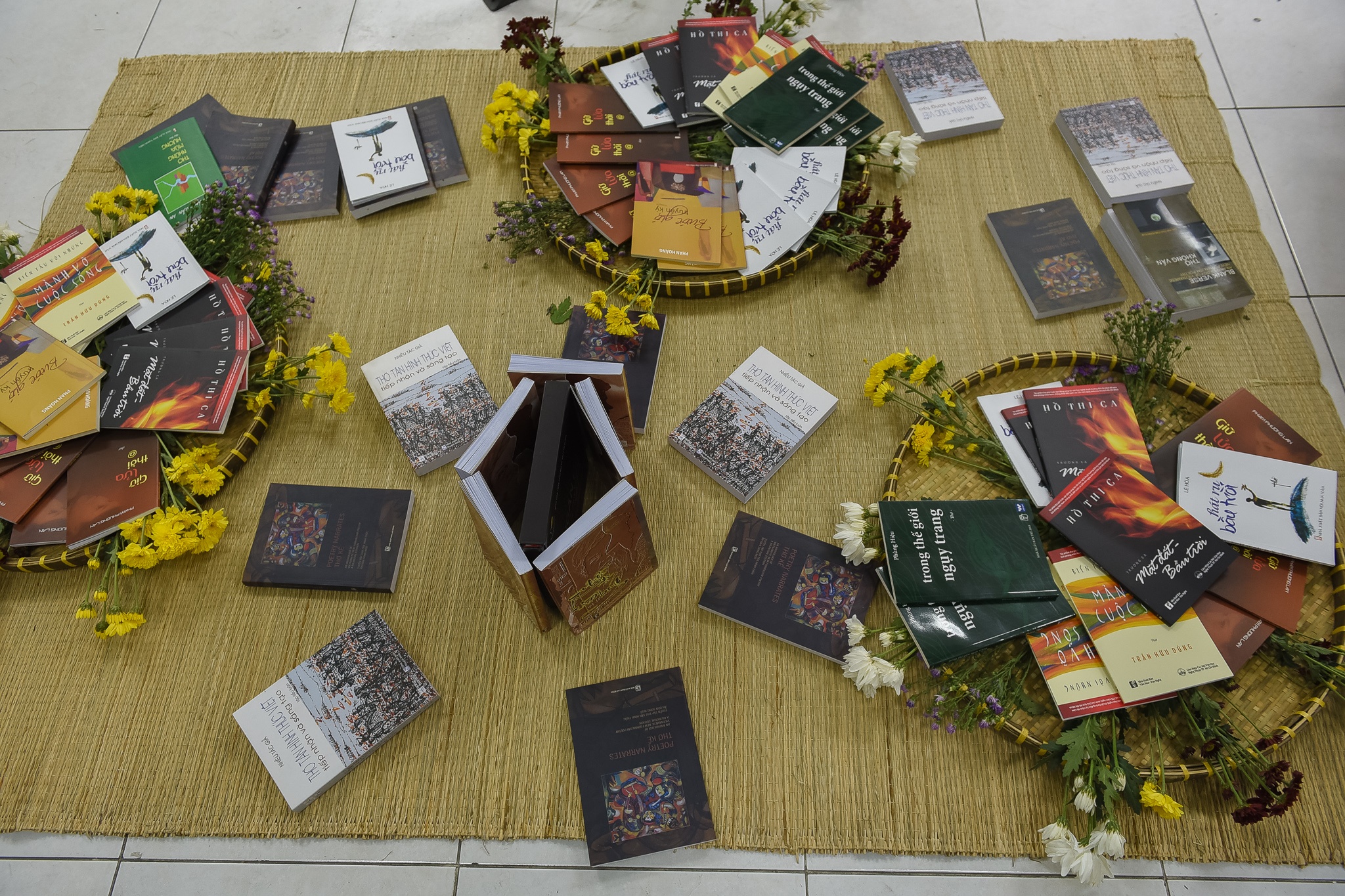 | Những tác phẩm của các nhà thơ trẻ được trưng bày trong sự kiện Ngày thơ Việt Nam tại TP HCM. |