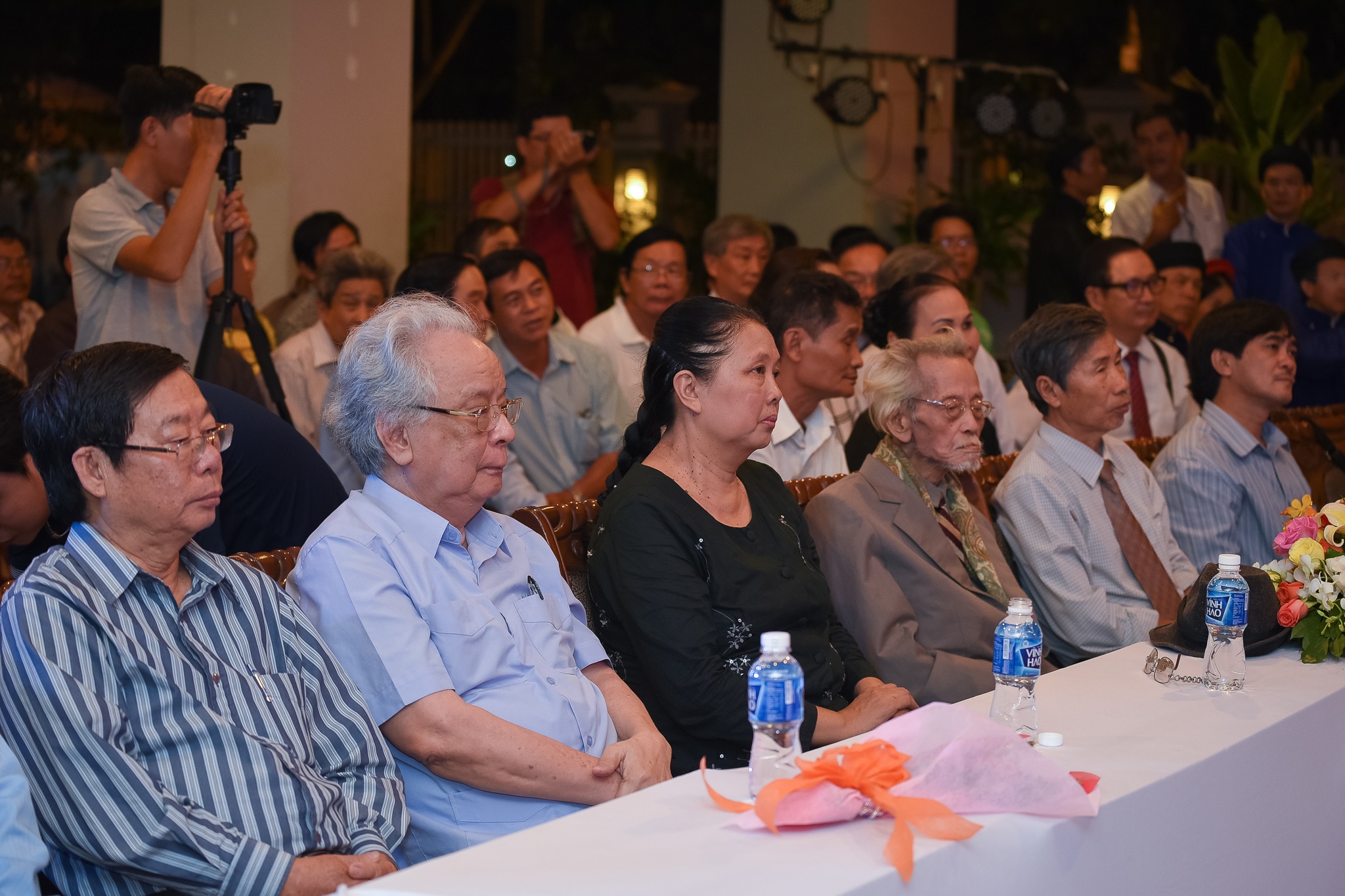 | Tham dự chương trình có lãnh đạo Hội nhà văn TP HCM như: nhà văn Trần Văn Tuấn - chủ tịch Hội (thứ 2 từ phải qua), nhà thơ Phan Hoàng - Phó chủ tịch Hội (ngoài cùng bên phải), Giáo sư Trần Trọng Đăng Đàn (thứ 2 từ trái qua) và nhiều nhà thơ trẻ của thành phố. |