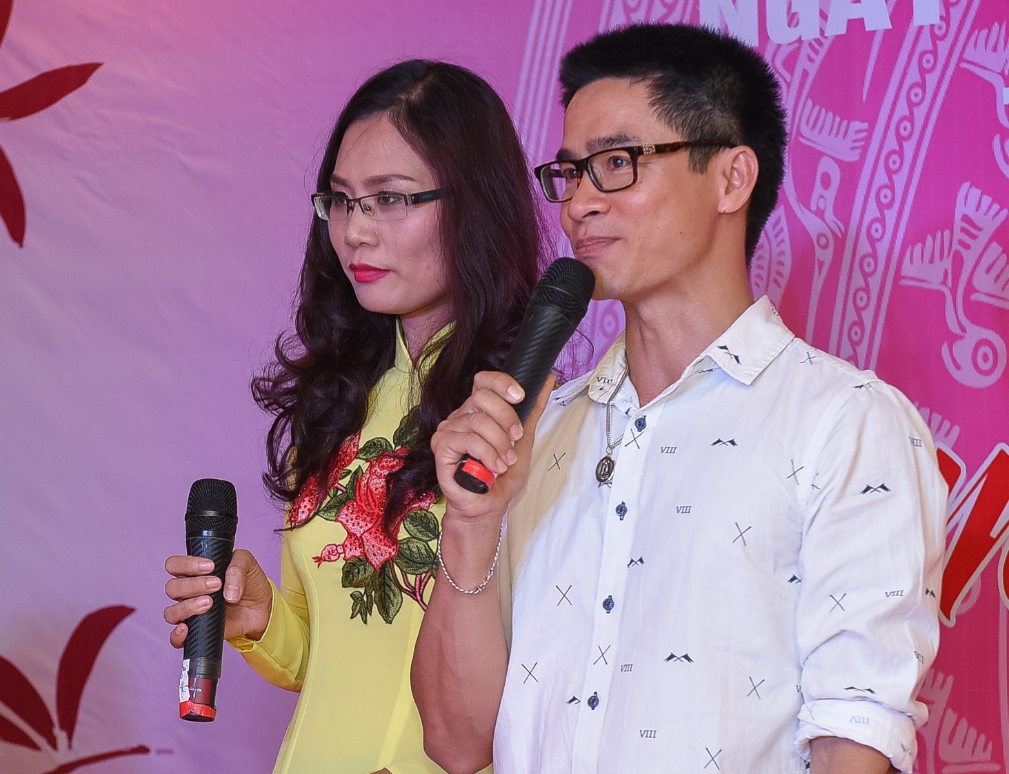 | Nhà báo - nhà thơ Phong Việt, Phương Huyền đảm nhận vai trò MC. Tác giả tập thơ Đi qua thương nhớ cho biết, đây là lần đầu anh tham dự Ngày thơ Việt Nam nên có nhiều bỡ ngỡ. |