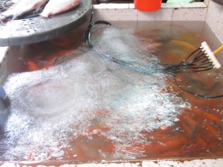 | Chợ đã về trưa ngày cuối tiễn ông Táo, nhưng vẫn còn rất nhiều cá vàng chưa được bán. |