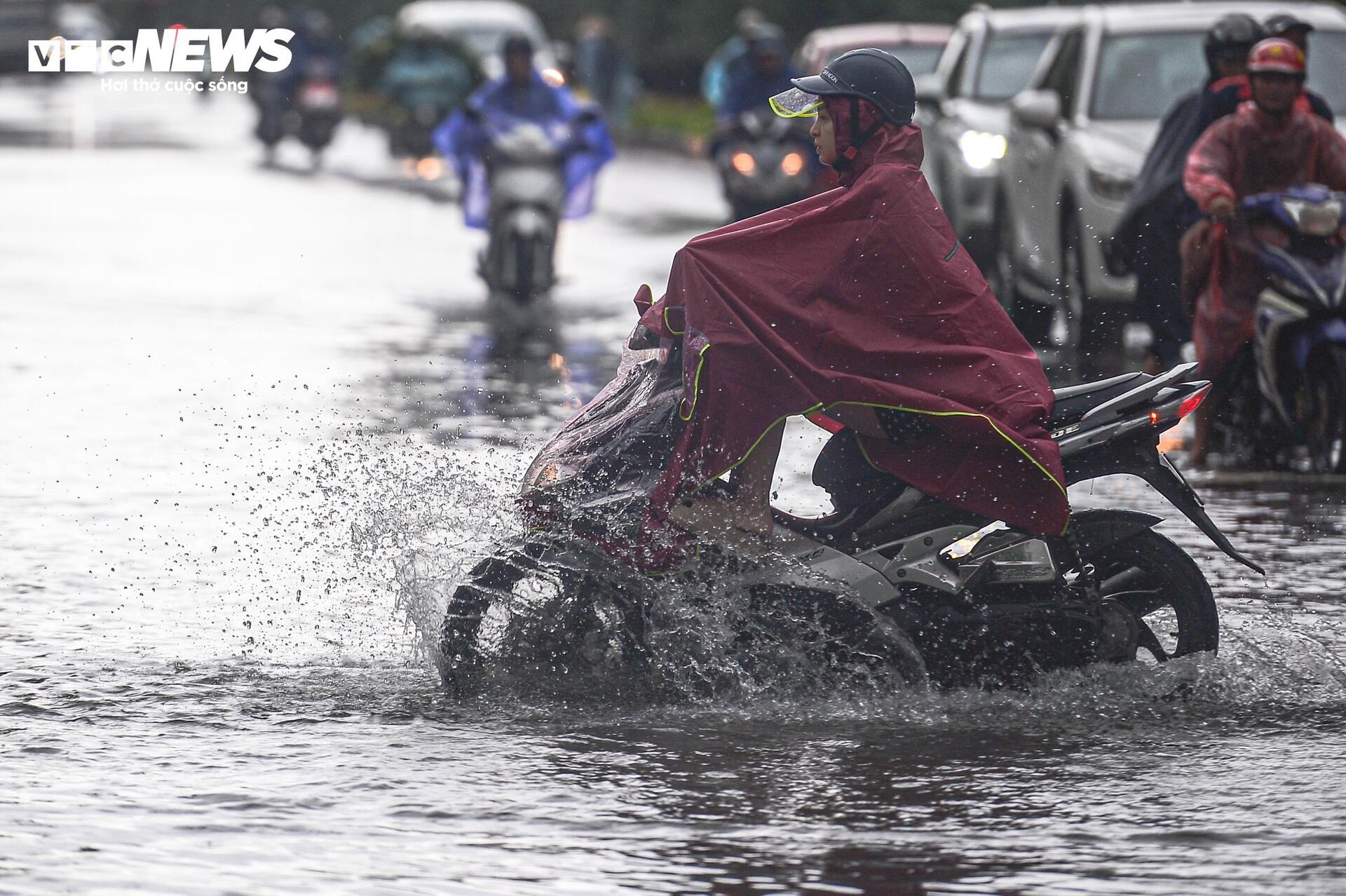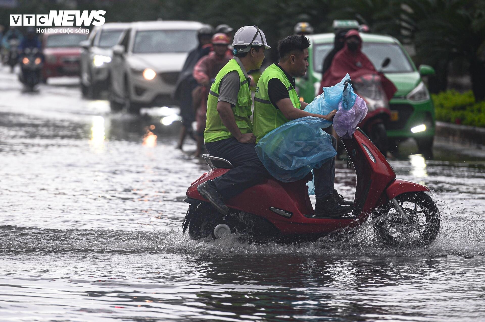 Nước dâng ngập hơn nửa bánh xe làm nhiều xe chết máy. Một số người phải xuống xe dắt bộ qua đoạn đường ngập.