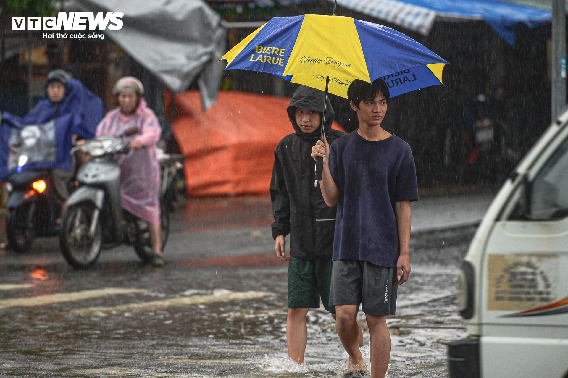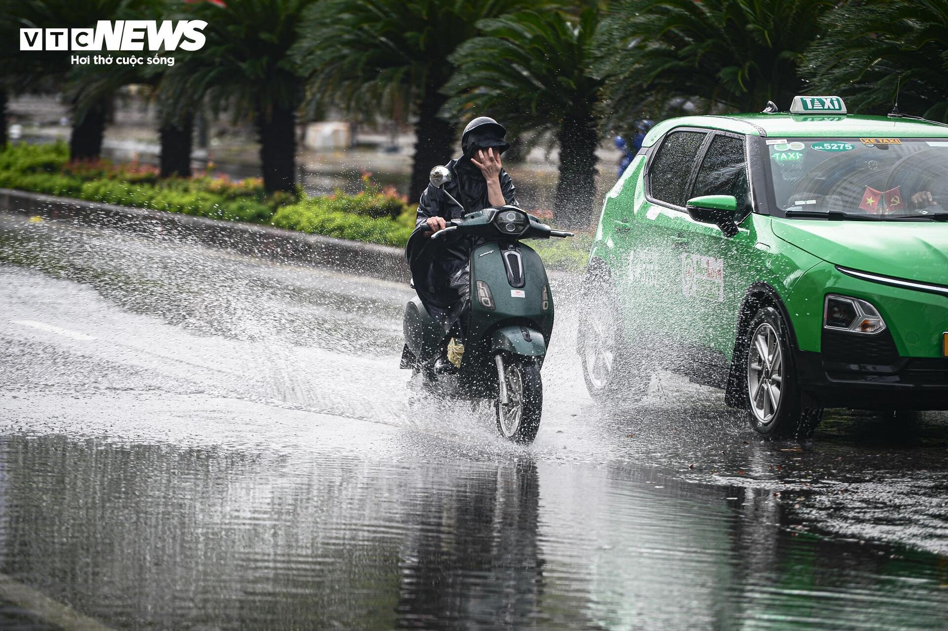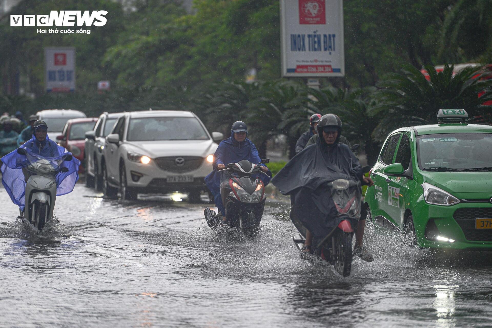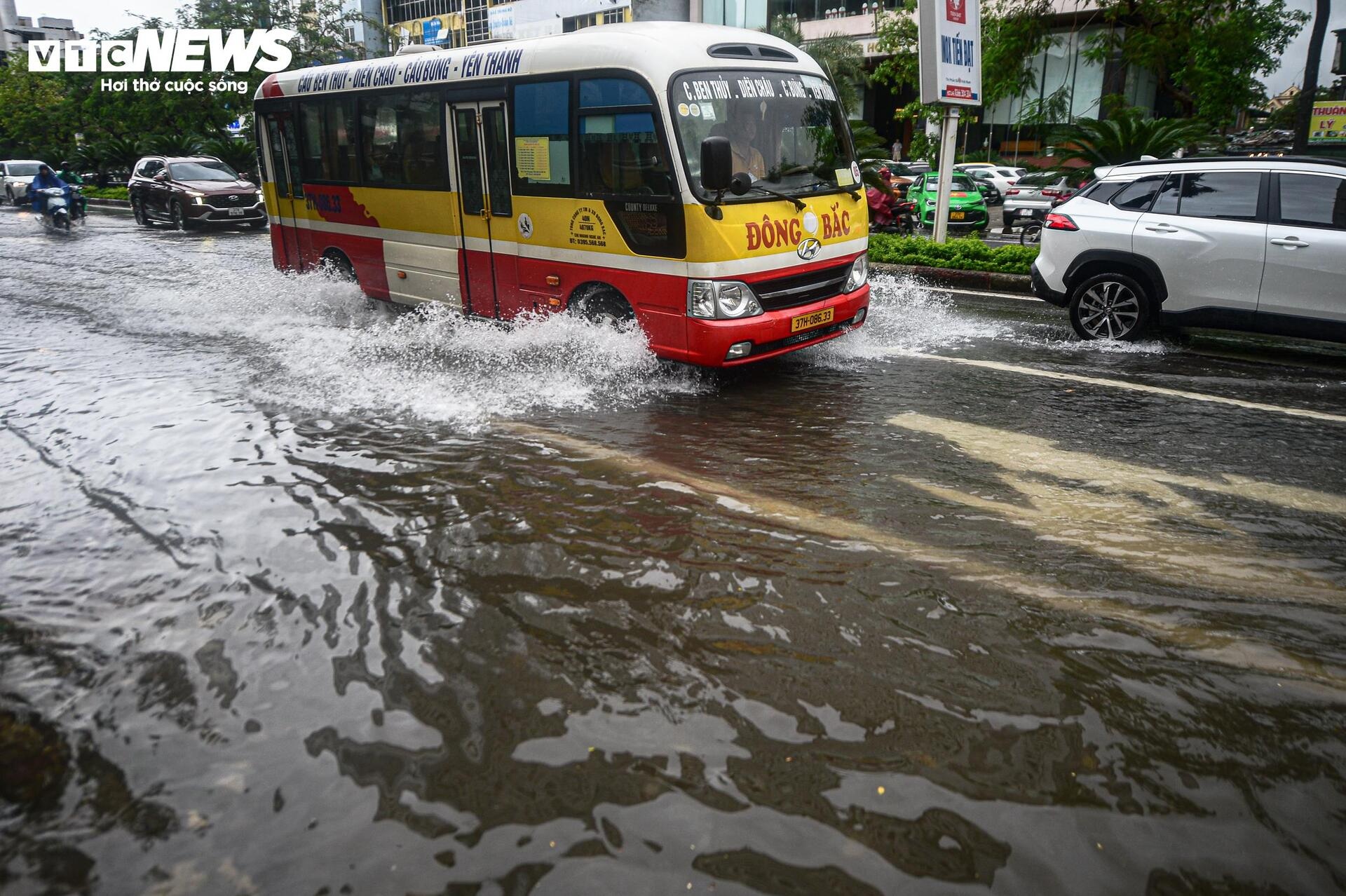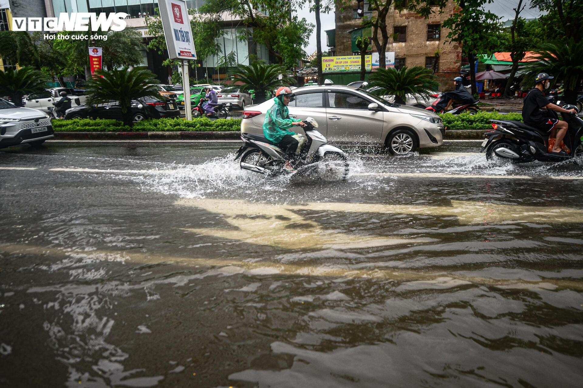 Ô tô, xe máy gặp khó khăn khi di chuyển qua các tuyến phố cũ như Phan Bội Châu, Trường Chinh, Đặng Thái Thân... do tình trạng ngập cục bộ.