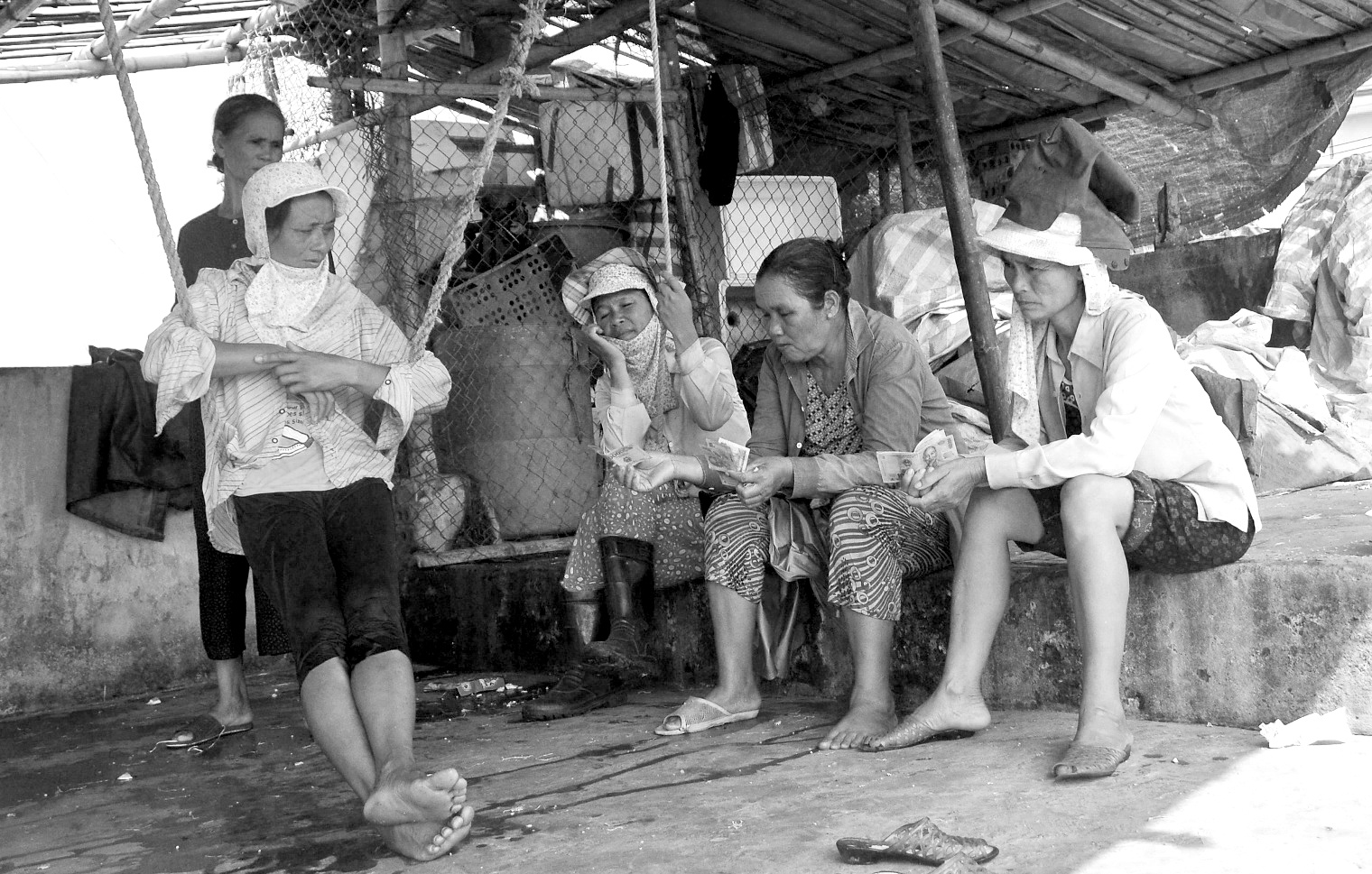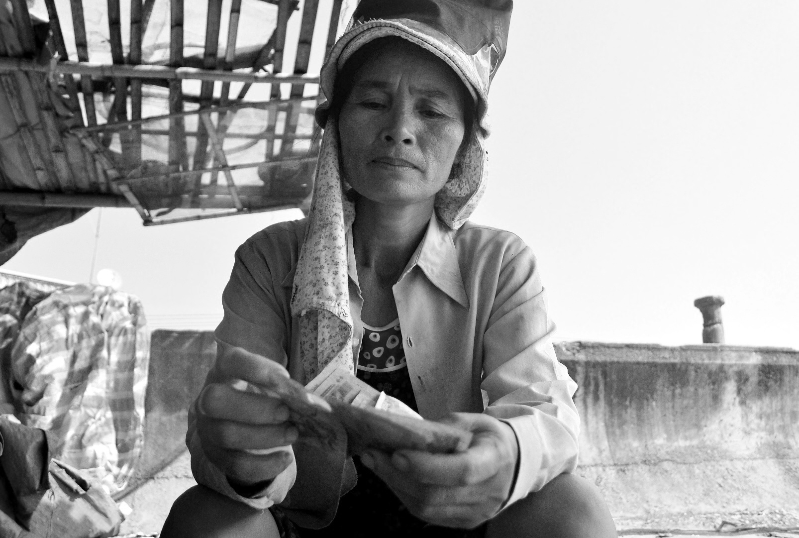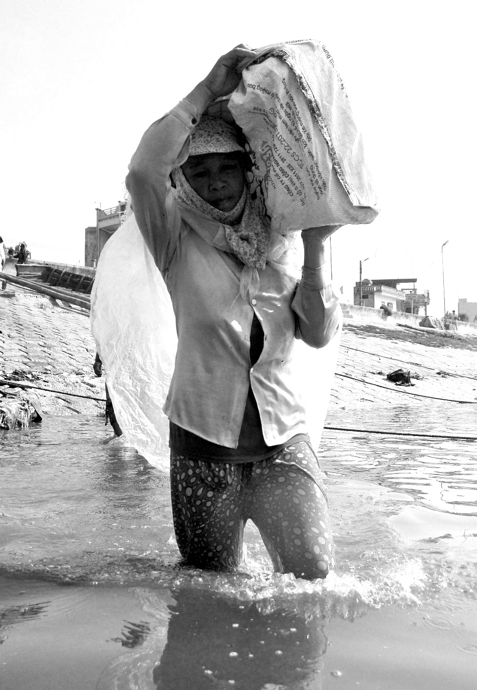 Trong đó hàng chục phụ nữ góa chồng vật lộn mưu sinh. Công việc của họ là lên tàu thuyền trước lúc ra khơi để khuân vác đá.