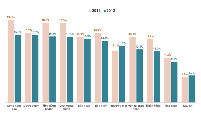 Trong khi đó, tỷ lệ nhảy việc trong ngành dược phẩm năm qua giảm nhẹ so với năm 2011 (16,2%), nhưng mức tăng vẫn cao hơn hầu hết các ngành khác. Đáng lưu ý, dược phẩm là ngành có tỷ lệ tăng lương mạnh nhất trong năm qua (12%).