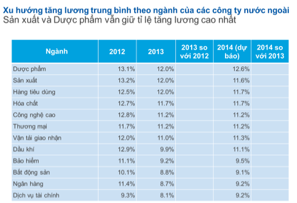 | (Nguồn: Báo cáo khảo sát lương Mercer-Talentnet 2013). |