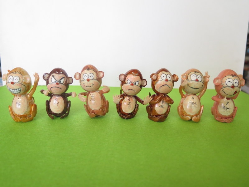 ti ếng Anh về hưu đã sáng tạo nên khuôn mặt khỉ với những nét hỷ, nộ, ái, ố, ai, lạc, dục tương đương vớimừng, giận, thương, ghét, buồn, vui, muốn cũng như tính cách của con người trong đời sống thường nhật. |