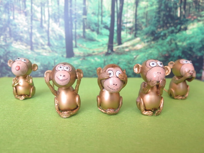| Đối lập với bức hình trên là đây là những chú khỉ không nghe, nói, nhìn, sờ, ngửi. |