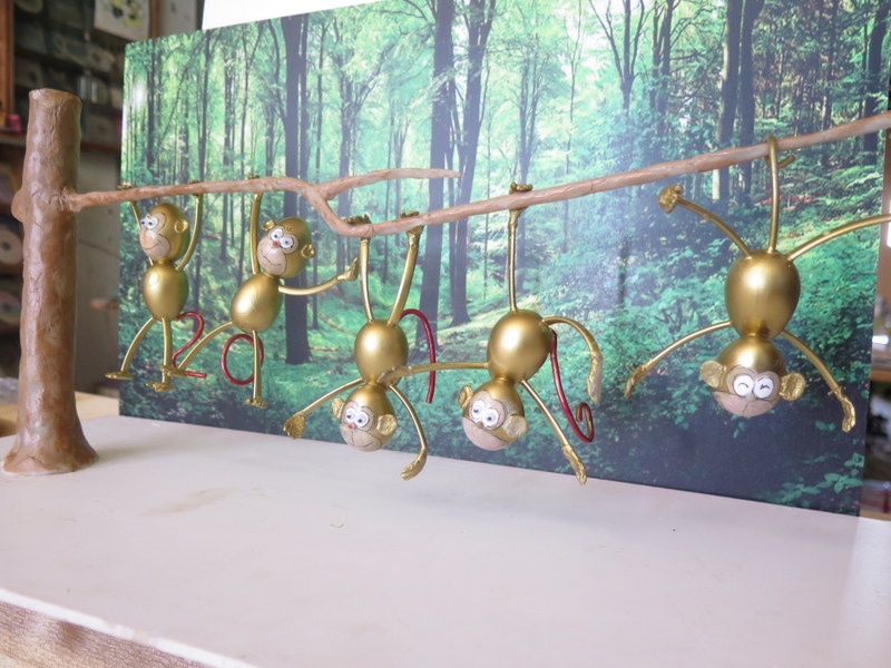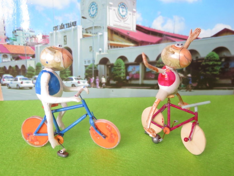 | Với sự đam mê, nghệ nhân Tâm còn làm cả các chú khỉ đi xe đạp làm xiếc vui nhộn. |