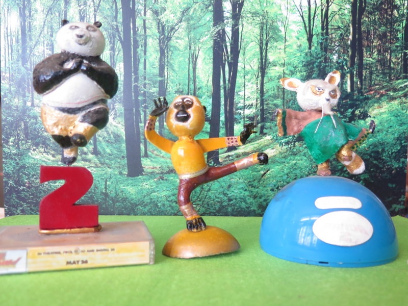 | Ông giáo về hưu còn tạo ra những chú khỉ kungfu đang luyện võ với sư phụ và gấu trúc. |