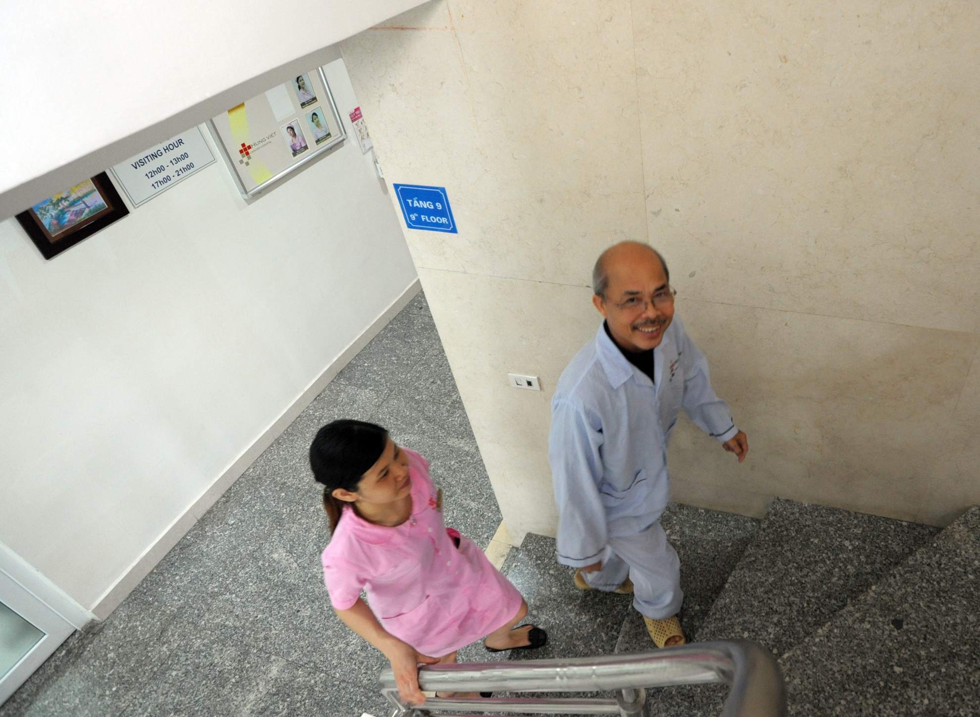 Ông có thể đi lại như người bình thường bằng cách leo bộ lên tầng mà không cần thang máy. "Chu Văn Quềnh" bảo, có thể đi được từ tầng 2 tới tầng 9 mà không cần người dìu như cách đây ít ngày.