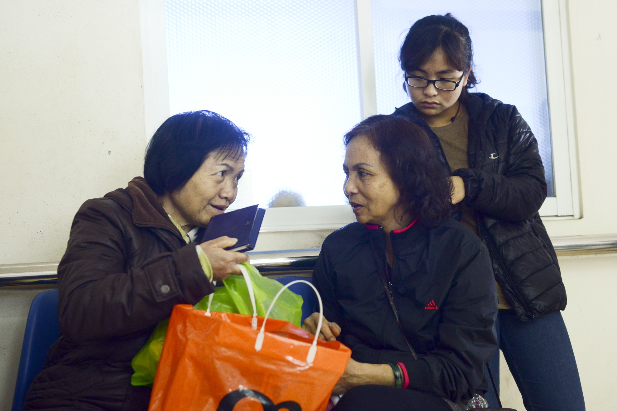 Chị Lan (áo đen) rất lo lắng cho tình trạng của chồng. Trước đó, chị đã đưa nghệ sĩ Hán Văn Tình đi khám lại ở viện K. Tuy nhiên, gia đình không có ý định chuyển ông sang viện khác và vẫn quyết định ở lại 198 để thuận tiện đi lại.