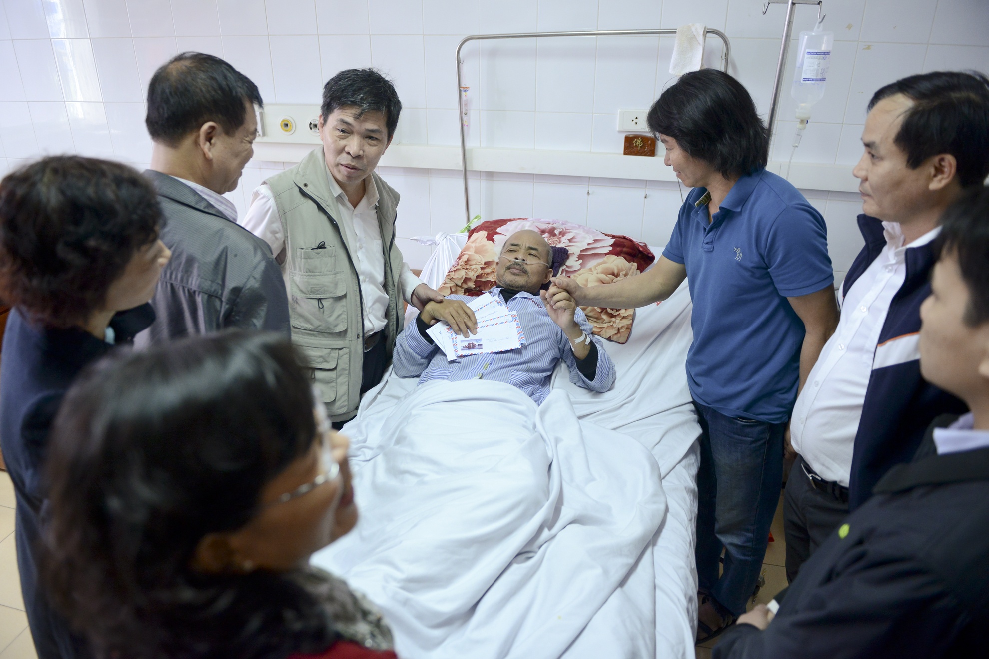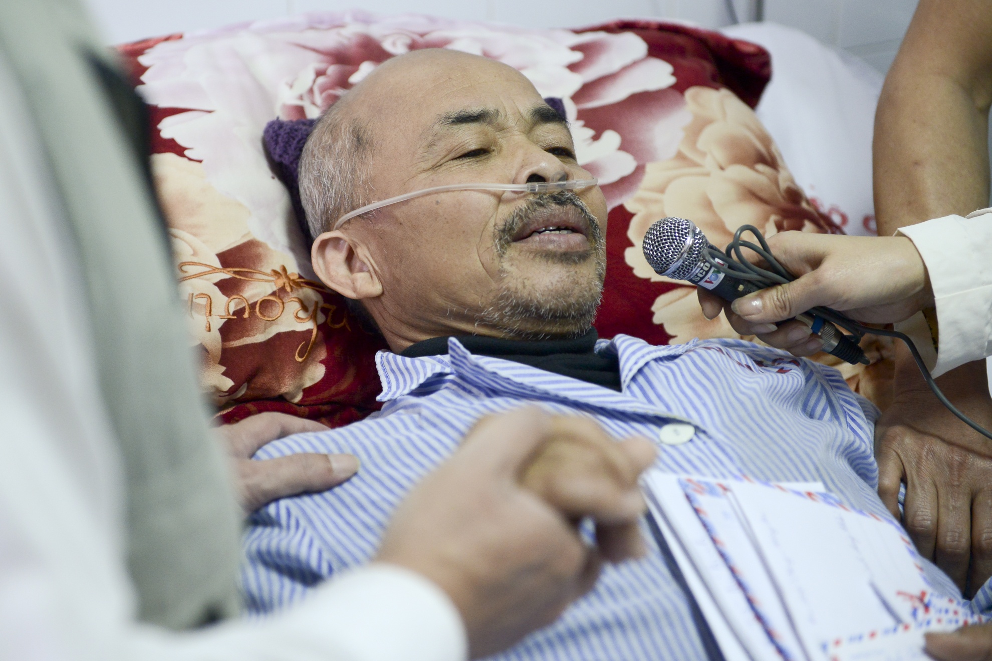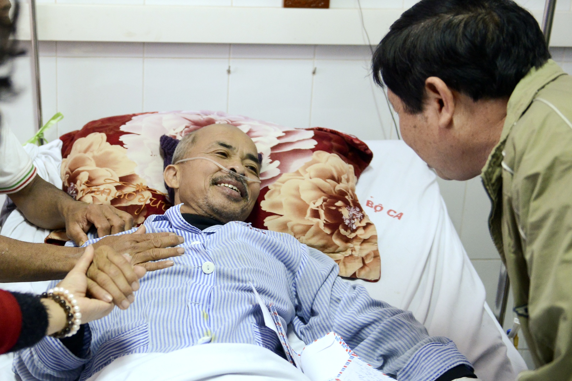 Sáng 28/1, dù rất mệt sau khi tiến hành hút dịch ở phổi song trước tình cảm chân tình của đồng nghiệp, bạn bè và người hâm mộ, "Chu Văn Quềnh" vẫn gượng cười và nói lời cảm ơn.