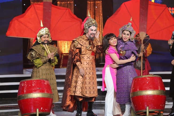 Việt Hương ôm Thụy Mười khóc khi chị không ngại bệnh tình, dùng sức lực để hát Hồ quảng. Ảnh: Kim Long |