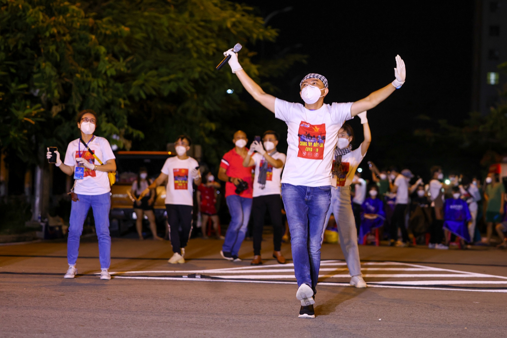 | Chương trình do đội tình nguyện nghệ sĩ, dẫn đầu là MC Quỳnh Hoa tổ chức. Trước đó, nhóm có nhiều hoạt động khác như hỗ trợ lấy mẫu bệnh phẩm, quyên góp và vận chuyển thực phẩm tới các khu bệnh, đi chợ giúp người dân... |