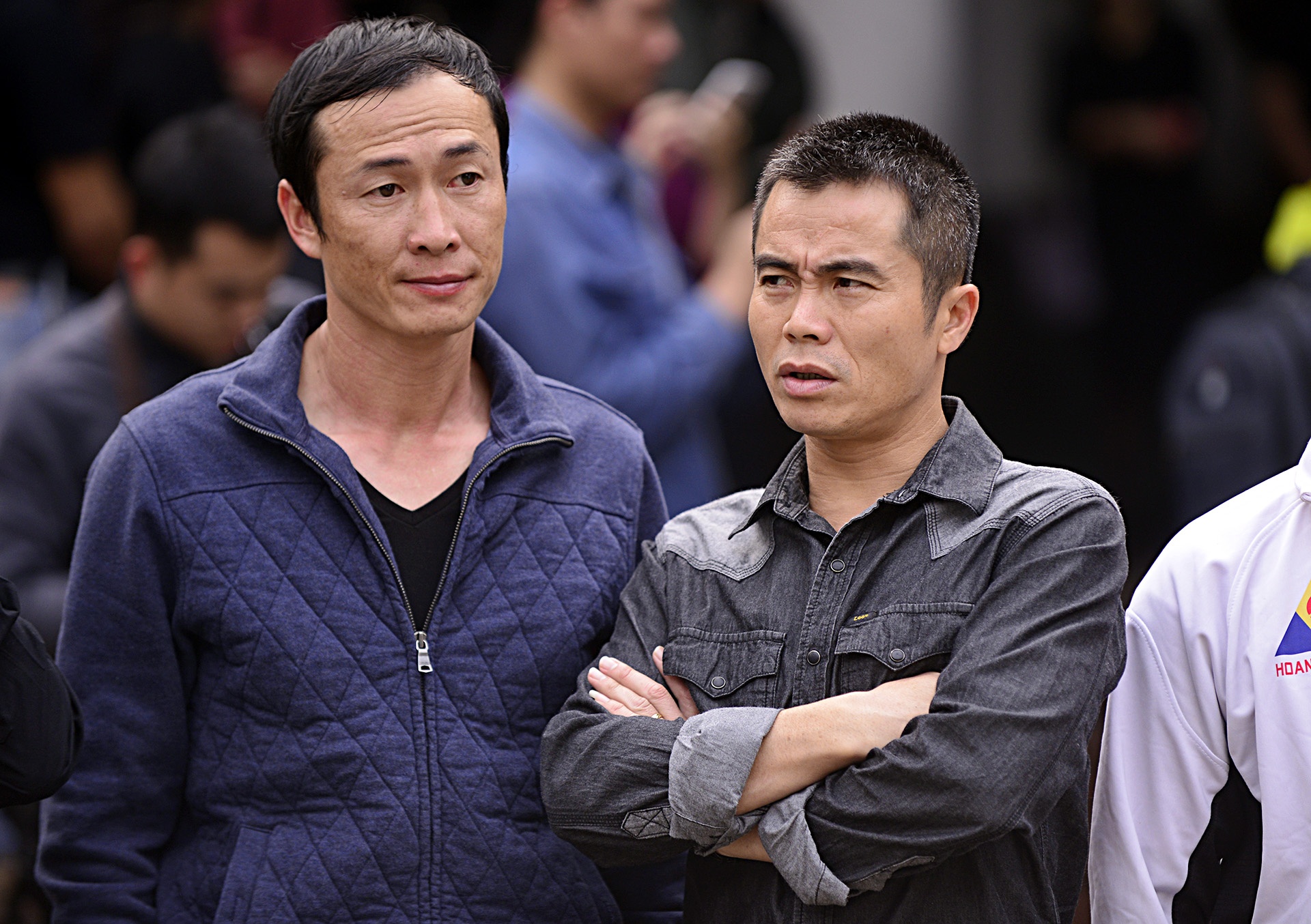 NSƯT Trần Nhượng và cựu danh thủ Hồng Sơn lặng lẽ bên linh cữu Trần Lập. NSƯT Trần Nhượng chính là chủ tịch câu lạc bộ bóng đá Ngôi sao mà giọng ca Đường tới đỉnh vinh quang tham gia.