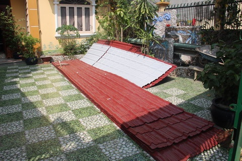 Gia đình bà không thể lợp lại mái ngói đành phải chuyển sang lợp tôn để đảm bảo an toàn.