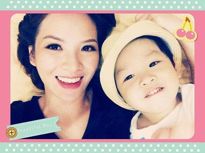 | Ảnh ngộ nghĩnh của Đan Lê và con trai Khải Minh. |