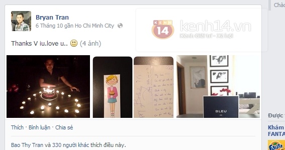 | Dòng chữ này làm nhiều người nghĩ ngay tới Tâm Tít chính là "vợ yêu" của Thế Bảo. |