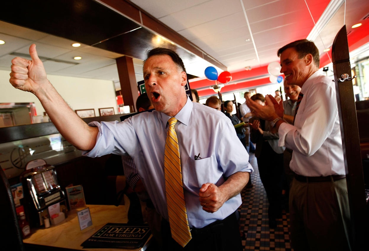 | Thượng nghị sĩ Creigh Deeds vận động tranh cử chức tổng trưởng lý bang Virginia trong một nhà hàng tại thành phố Arlington, bang Virginia vào ngày 12/6.2009. Ảnh: Getty Images. |