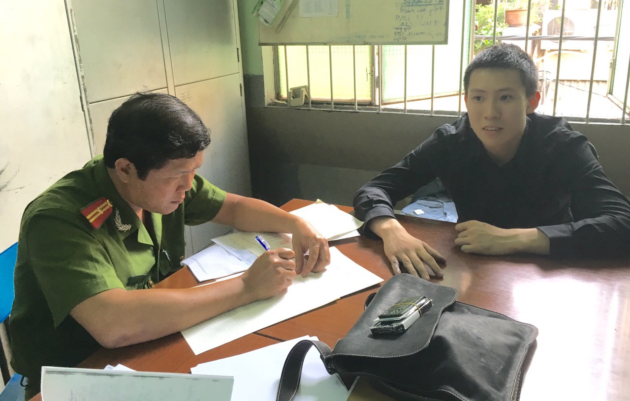 Sau khi bị Công an quận Bình Thạnh (TP HCM) bắt tại một khách sạn 5 sao trên đường Lê Duẩn, quận 1, nghi can Nguyễn Hoàng Minh (20 tuổi, ở quận Bình Thạnh) được dẫn giải về cơ quan điều tra.