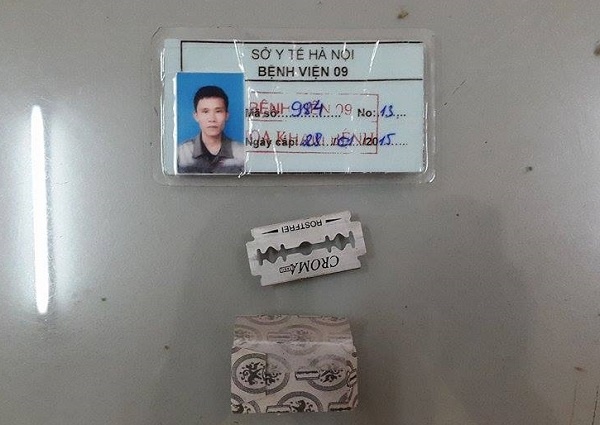 | Dao lam và thẻ điều trị HIV của Trần Xuân Thanh. Ảnh: Đ.T. |