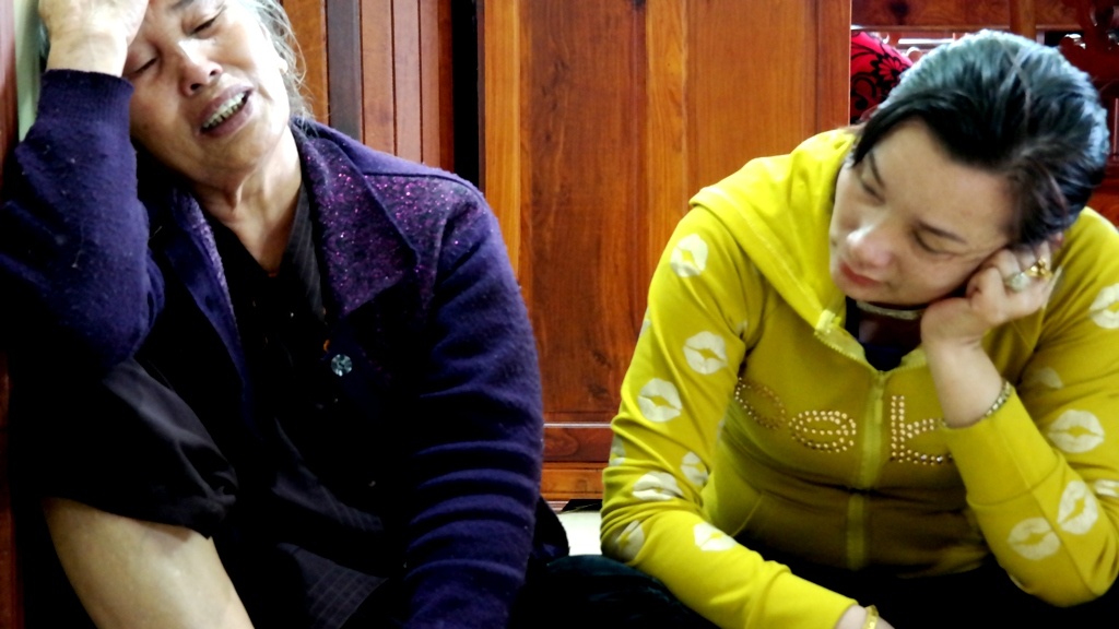 | Người thân của gia đình nạn nhân đau khổ trước sự ra đi đột ngột của ông Sắt và chị Tý. Ảnh: Đoàn Nguyên. |