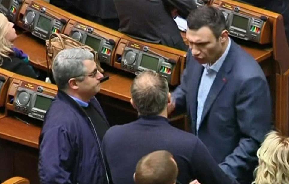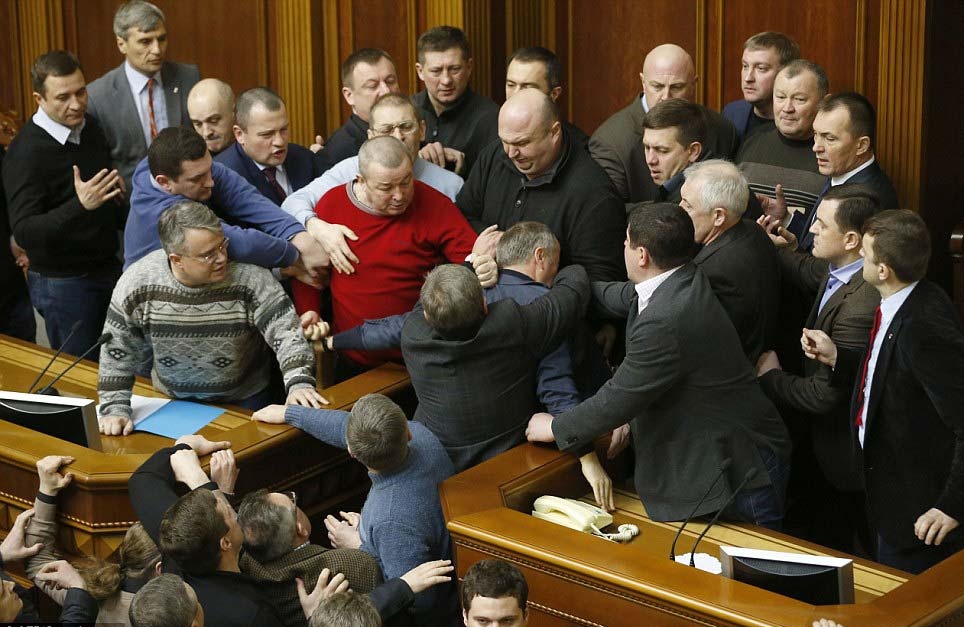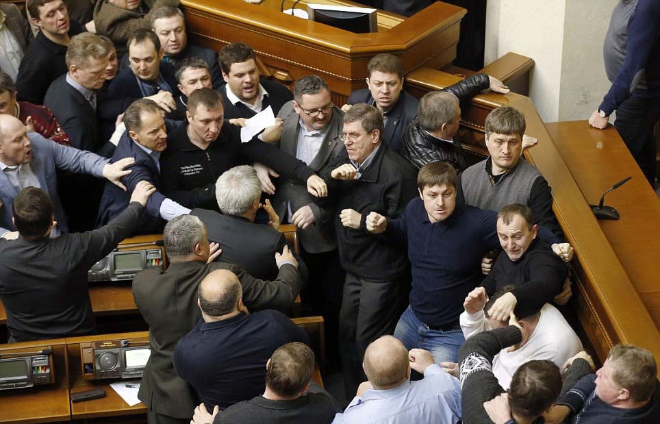 Các nghị Ukraina tranh luận căng thẳng, thậm chí còn ẩu đả trước khi họ ký kết thỏa thuận nhằm chấm dứt biểu tình hôm 21/2.