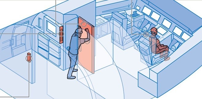 | Đồ họa mô phỏng quá trình phá cửa buồng lái của cơ trưởng chuyến bay 4U9525. Ảnh: Naitonal Post |