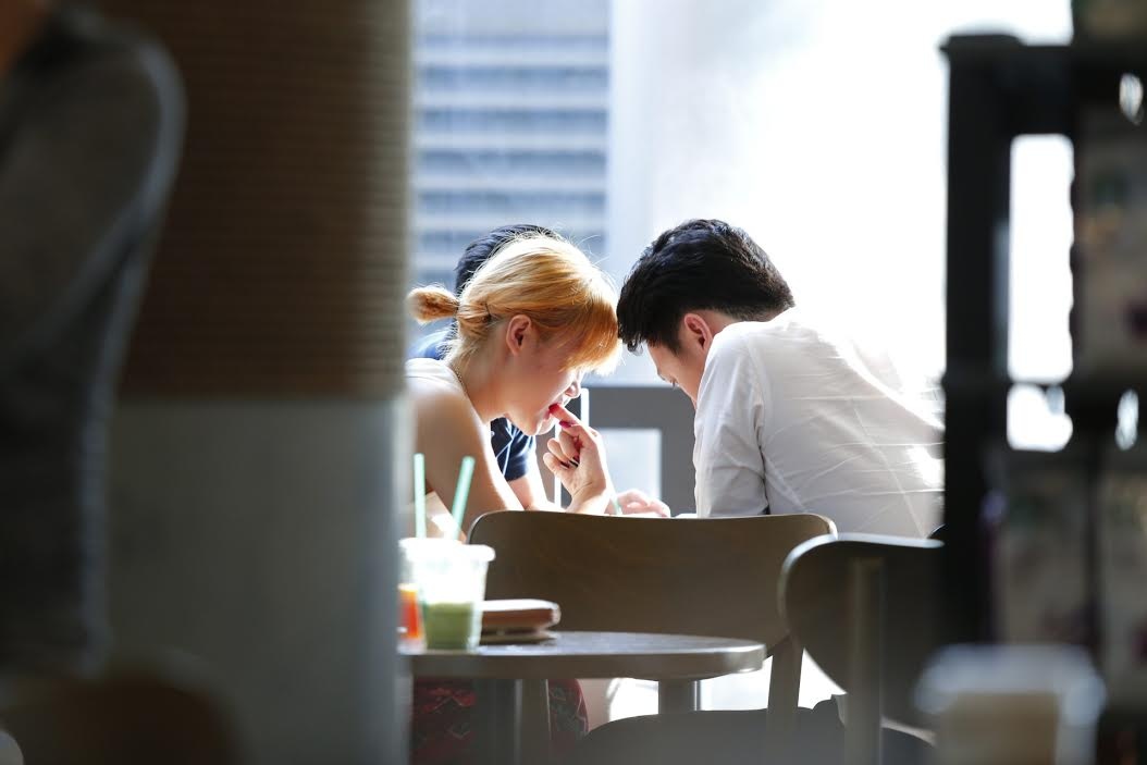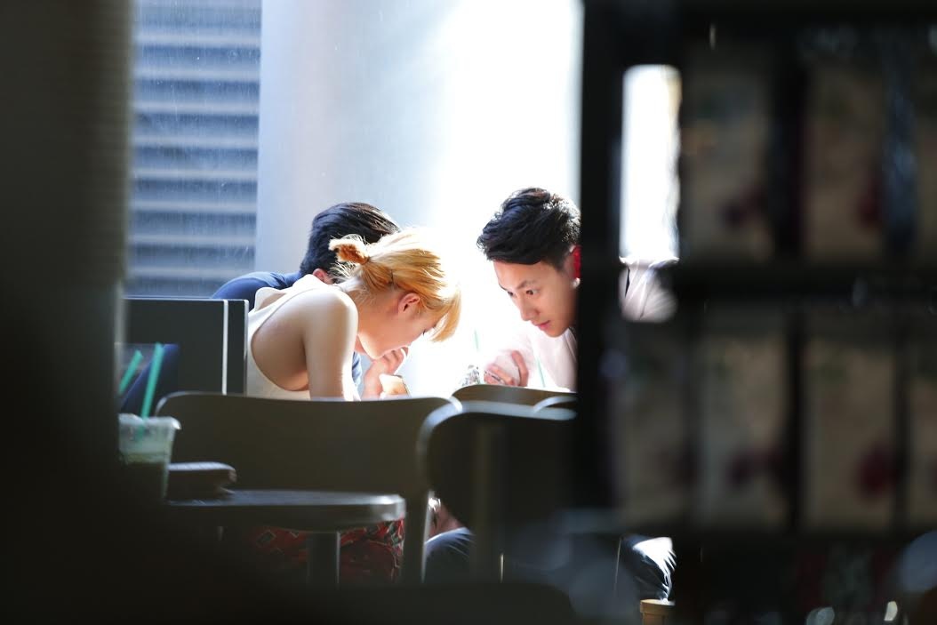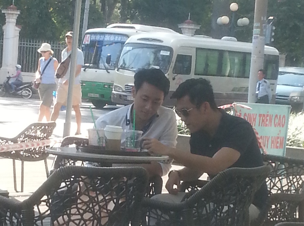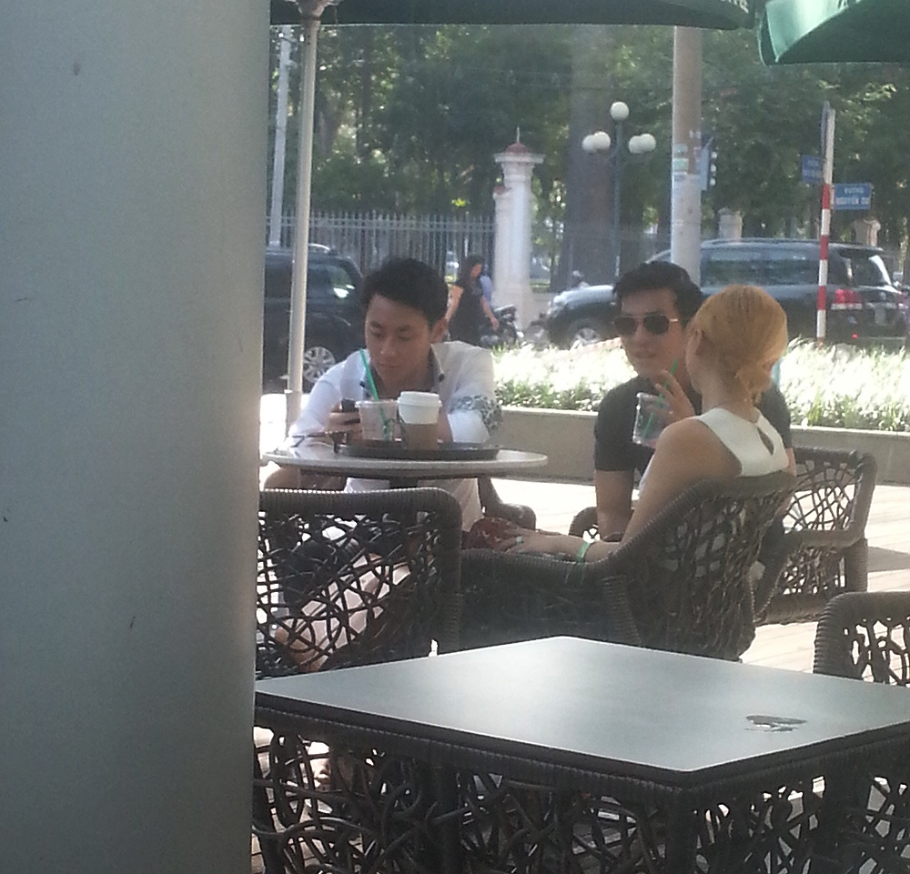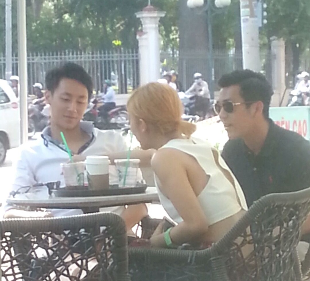 | Trong buổi cà phê chiều 28/2, Văn Mai Hương và Thiên Minh hẹn hò một anh chàng điển trai. |