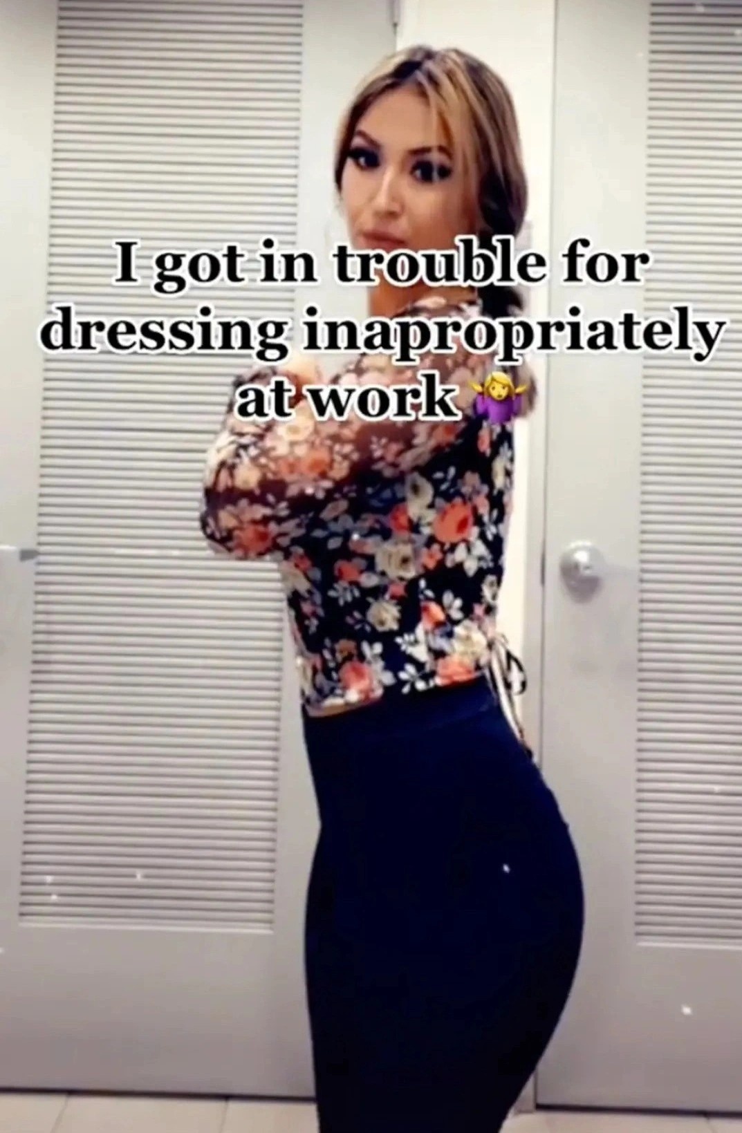 “Tôi gặp rắc rối vì ăn mặc không phù hợp tại nơi làm việc. Sếp nói các kiểu áo của tôi quá ngắn. Tôi không biết mọi người nghĩ thế nào?”, Huerta chú thích trên clip.
