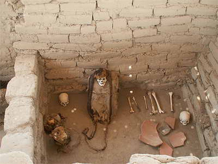 | Các cuộc khai quật khảo cổ đã phát hiện ra nhiều điều thú vị. Các bộ xương khô được phát hiện trong tư thế ngồi dựa lưng trong các hầm mộ. |