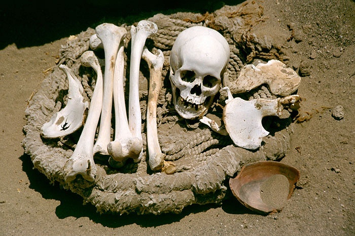 | Những bộ hài cốt đã 1.000 năm tuổi ở nghĩa trang Chauchilla, cách thành phố Nazca chỉ khoảng 30 km, nằm ở ven sa mạc. |