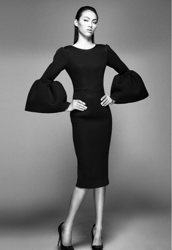 | Nhung chưa có kinh nghiệm trong nghề người mẫu nhưng cô sở hữu gương mặt ấn tượng cùng chiều cao hiếm thấy nên nhà thiết kế Đỗ Mạnh Cường không bỏ qua gương mặt mới này. |